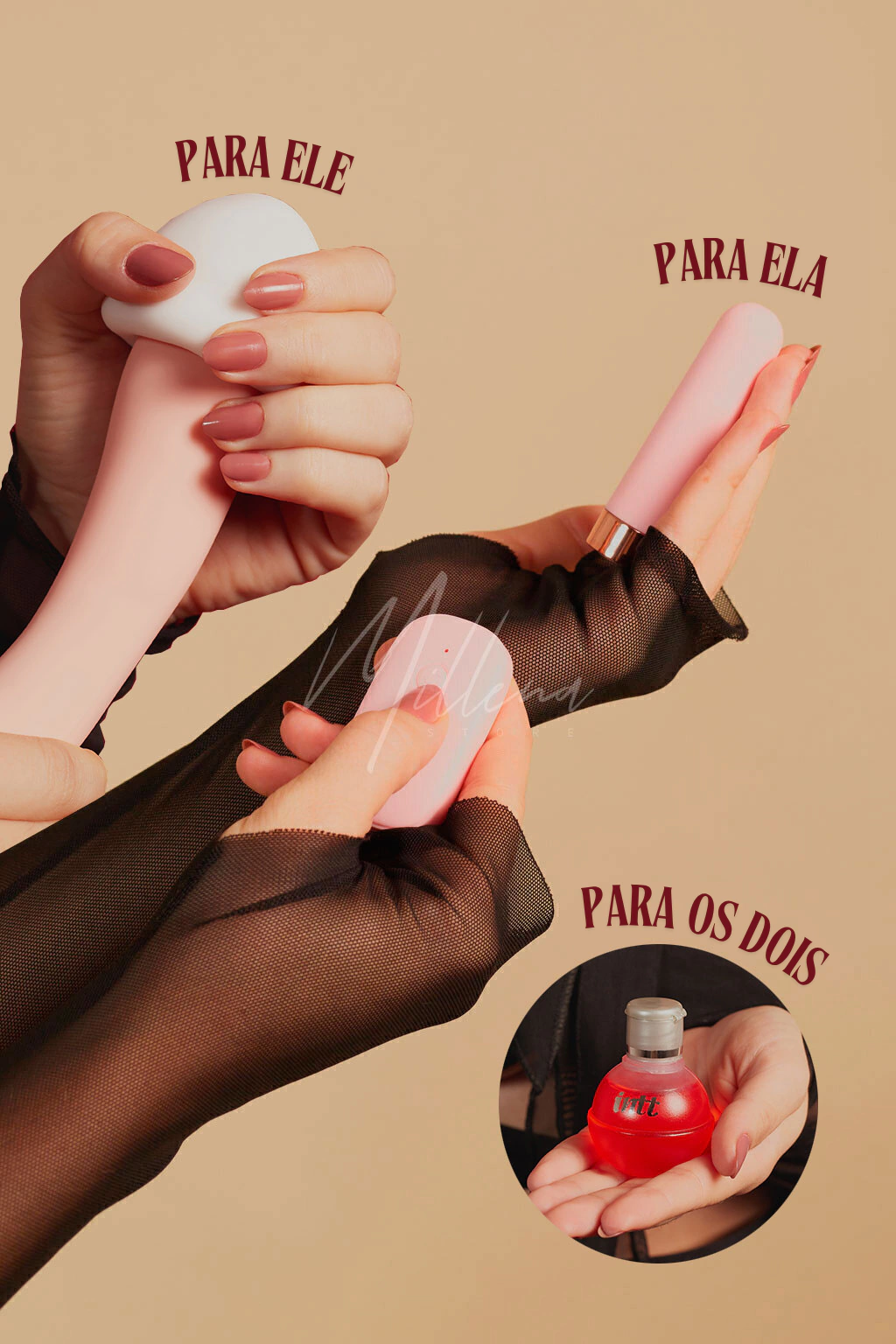 Delicadamente pensado para momentos de prazer e conexão, o Kit Iniciante reúne três itens que transformam a rotina em um convite ao toque, a descoberta e sensações a flor da pele: